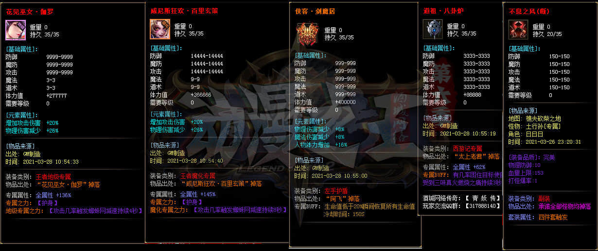 本服套装70套 散件专属3000多套 各种神装眼花缭乱 长期探索